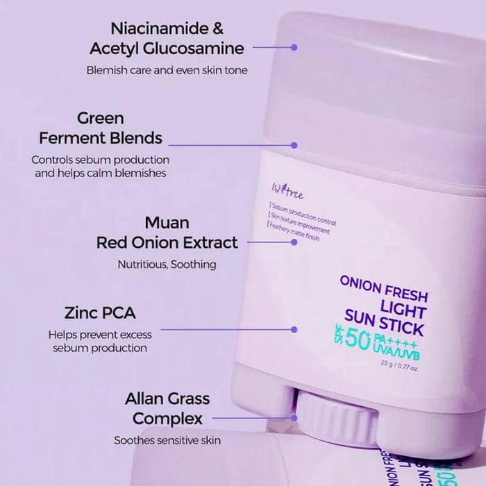 Say hello to effortless sun protection with our Muan Red Onion UV Shield Sun Stick—a lightweight, non-greasy sunscreen that glides on smoothly for an invisible, velvety finish. This SPF50+ PA++++ chemical sun stick shields your skin from harmful UV rays while delivering soothing and blemish-care benefits.
