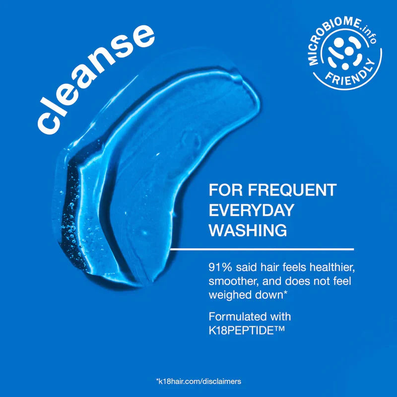 Elevate your hair care routine with the K18 Damage Shield pH Protective Shampoo. This gentle, color-safe formula is designed to cleanse effectively while preserving your hair's health and vibrancy. Enriched with the patented K18PEPTIDE™, it helps repair and protect your hair on a molecular level. The pH-optimized formula minimizes cuticle swelling during washing, reducing frizz, preserving color, and enhancing natural shine.