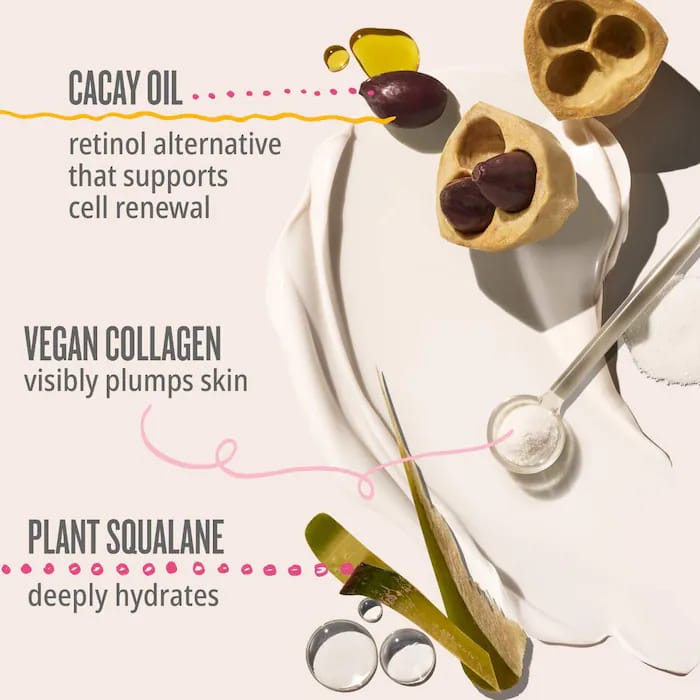 • Elasticity-Enhancing Formula: Powered by Cacay Oil, a gentle retinol alternative, and Plant Collagen, it supports cell turnover and visibly smooths and firms your skin.